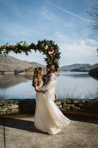 Hannah & Kyler were married on a beautiful day at the beginning of January. It was warm and the sun was shining, which was awesome considering you never know what the weather is going to be like in the mountains during winter. Hannah was was a little disappointed at first, she was hoping for some snow for their wedding. They had their ceremony at the Fontana Dam overlooking the lake and the mountains. It was breathtaking.