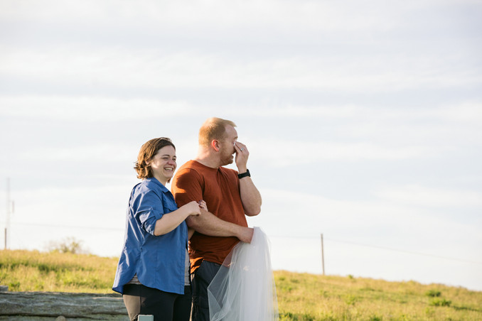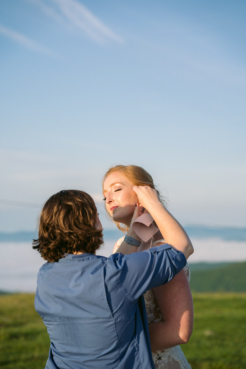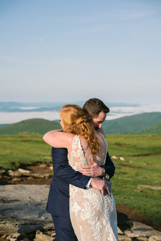 They shared their first look just after sunrise on a mountaintop with the clouds down in the valley. To say the view was stunning this morning is an understatement. Also take note, Brandon's reaction is the reaction everyone wants for a first look. They spent some time just soaking it all in before exchanging their vows privately. Laura's brother and sister in law also wrote them some very sweet letters that they exchanged. We spent some time enjoying the morning light and had some coffee before beginning our hike back down.