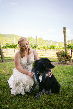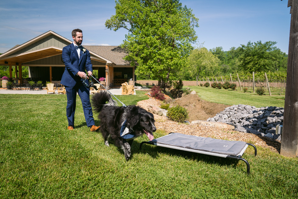 We headed off to Souther Williams Vineyard which was just a short drive away. Laura went to go freshen up and all the final touches were set for the ceremony. They had a beautiful ceremony overlooking the vineyard with their friends and family in attendance. Their dog Bear was their ring bear-er ❤️