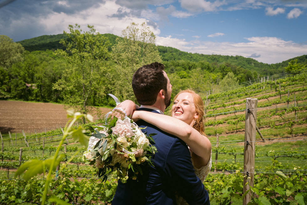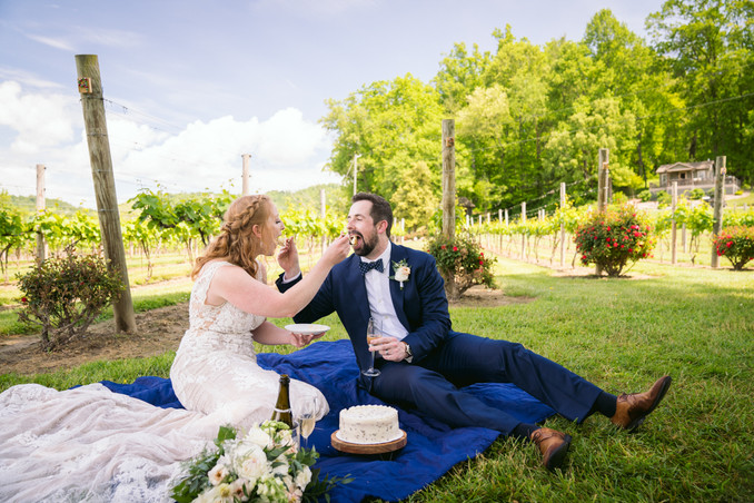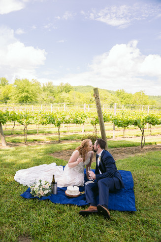 After the ceremony we took some family photos and then they had a picnic in the vineyard. They popped champagne, enjoyed some cake, and snuck in some puppy snuggles. We explored around the vineyard for a while more and then they shared their first dance just the two of them.